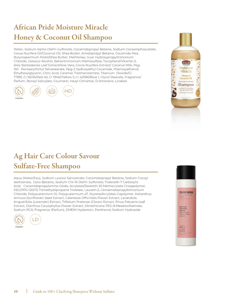 This Ultimate Guide contains 100 Clarifying Shampoos currently on the market for natural hair. For each product, we have indicated if it contains protein, aloe, glycerin, or coconut. Manufacturers often change ingredients in formulas so be sure to double-check the ingredient list before you purchase a shampoo.